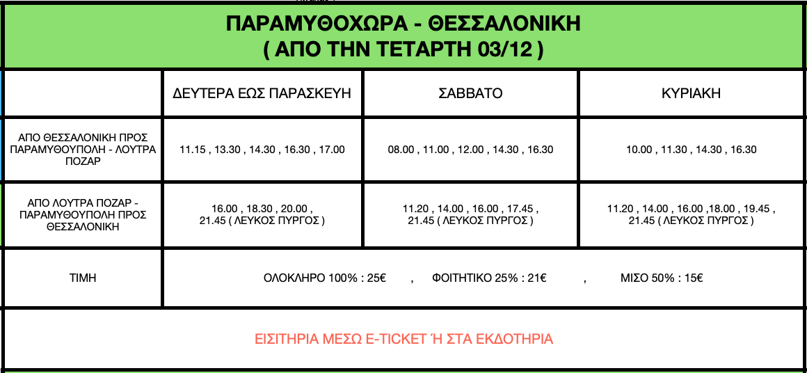 Εισιτήρια μόνο από τα εκδοτήρια και μέσα στα λεωφορεία.